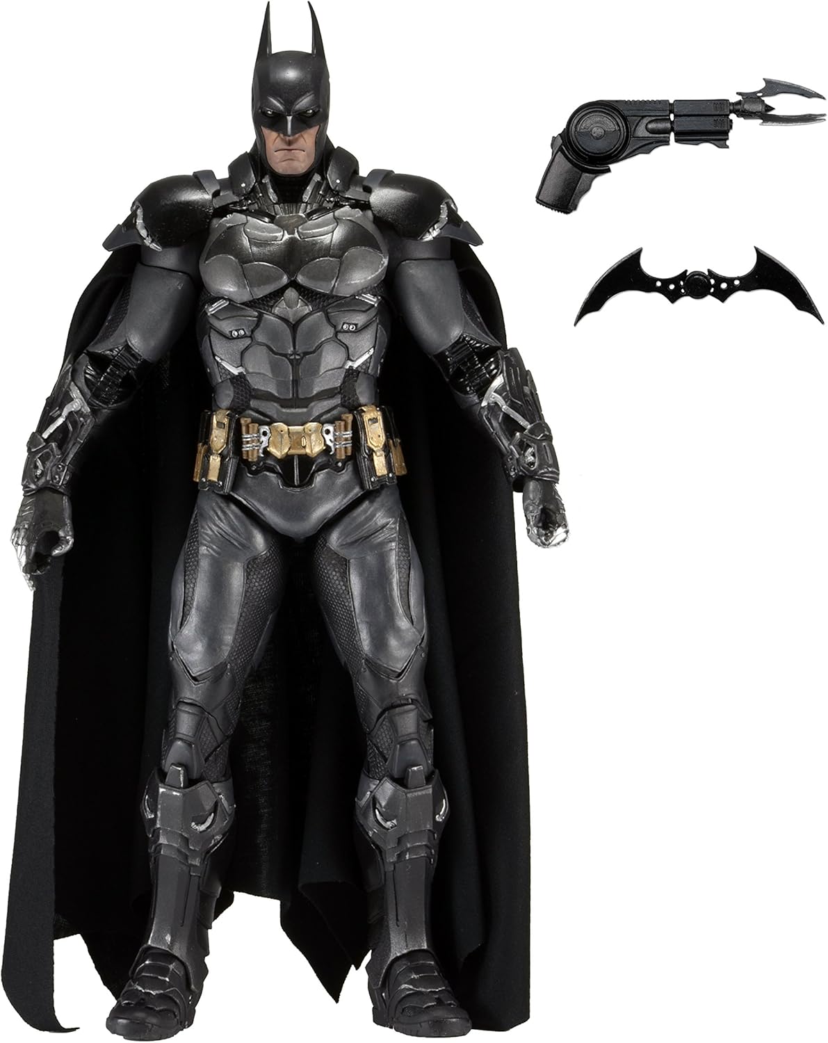 Batman features over 25 points of articulation and includes Batarang and grapnel gun accessories, multiple interchangeable hands and a soft fabric cape. Window box packaging.