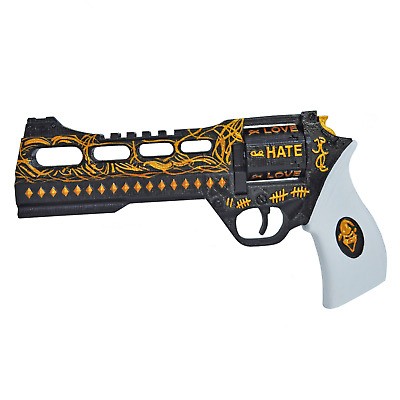 Harley Quinn style revolver gun prop from Suicide Squad. Made of PLA plastic, hand painted with acrylic paint and has a satin/glossy finish.