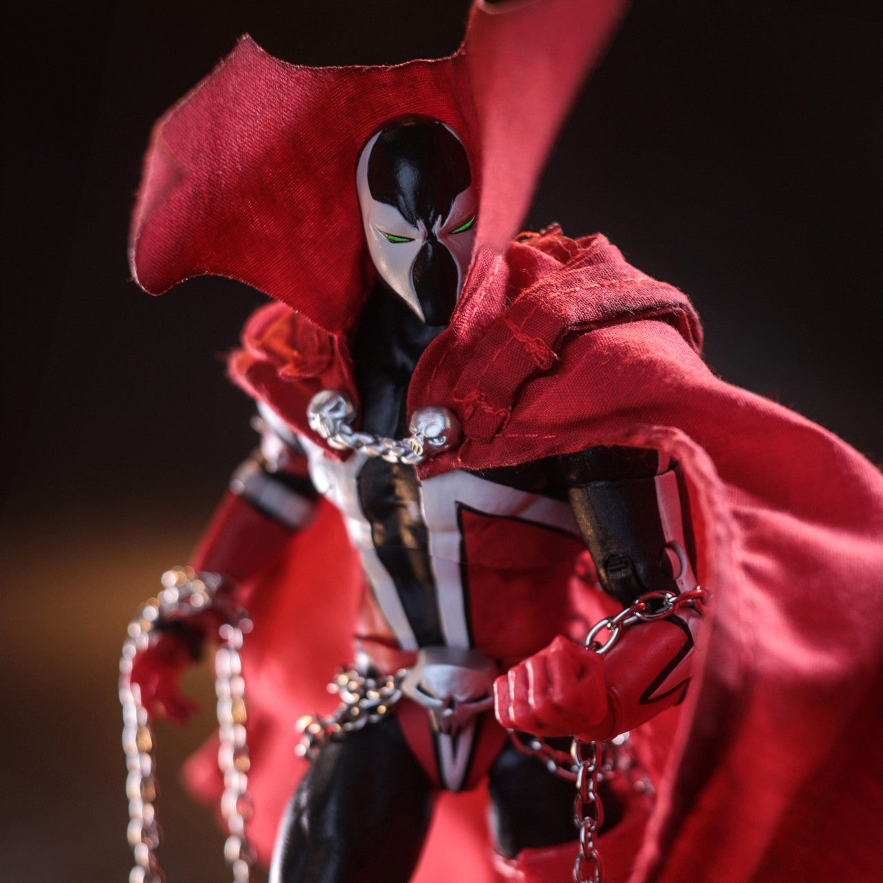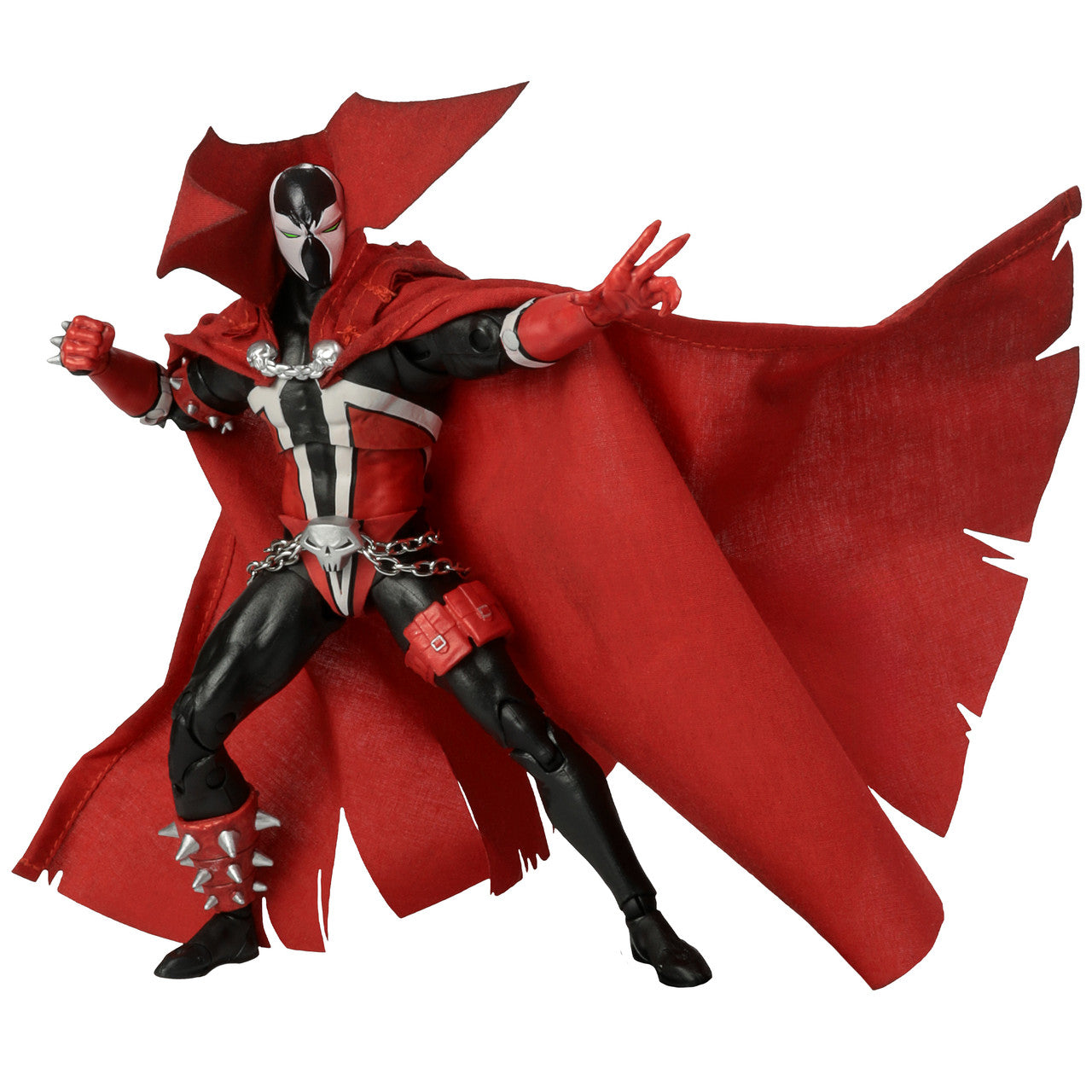 - Includes wired fabric cape, 2 attachable chains, spiked club, 4 alternate hands, alternate head, Necroplasm effect and collectible art card.