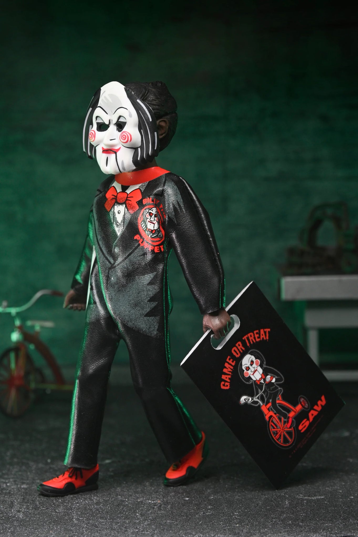 The Ben Cooper Costume Kids Collection is back with Series 9, bringing a fresh batch of spooky trick-or-treaters to your shelf! Based on the licensed kids’ costumes from one of the largest Halloween costume manufacturers from the 1950s–‘80s, these fully poseable 6-inch figures perfectly capture the vintage charm of the looks from that era. This wave features NECA’s original designs in the style of Ben Cooper costumes as if they were produced today, reimagining the legendary horror villain Billy the Puppet (SAW). Wearing a mask and soft goods clothing replicating the vinyl look of classic costumes, each frightful figure comes complete with a movie-specific trick-or-treat bag or pumpkin bucket accessory. Every figure is sold separately and packaged in a numbered, retro-style window box that pays homage to the classic costume packaging.