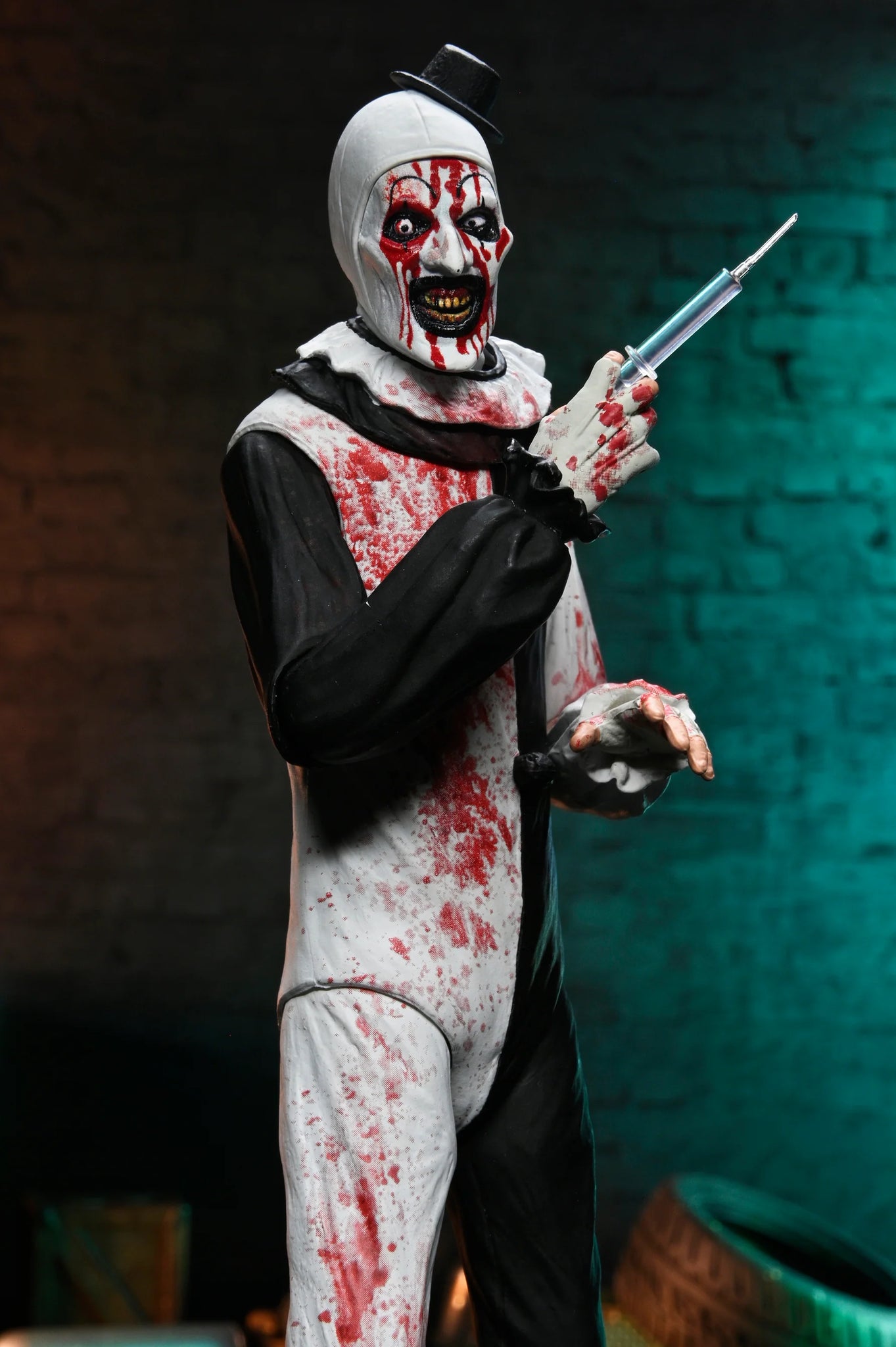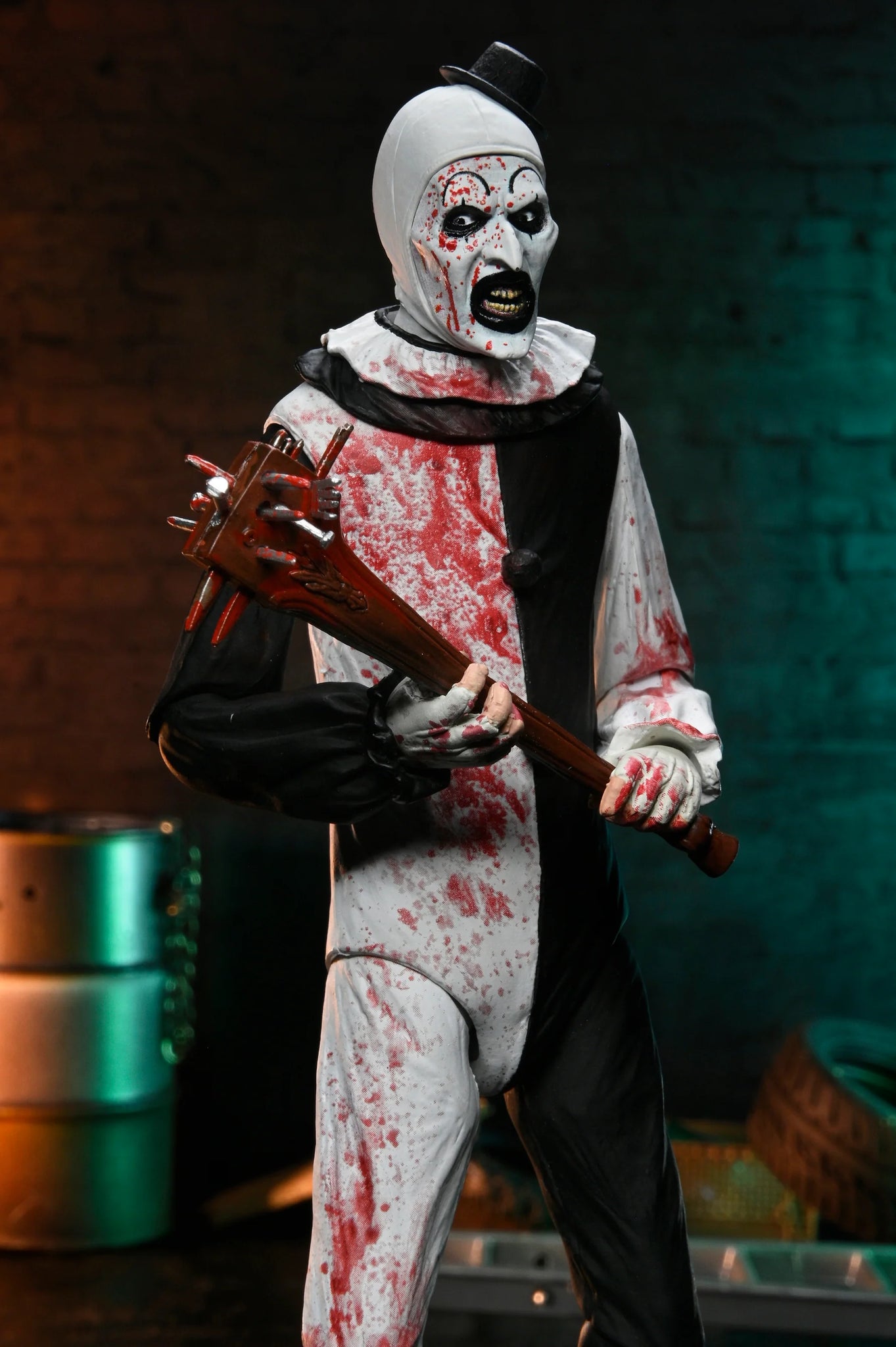 From Damien Leone's Terrifier 2, NECA brings you this Ultimate Art the Clown action figure—a terrifying tribute to a modern horror icon. Standing in 7-inch scale, this fully articulated killer clown features blood-splattered deco, dripping in his victims’ blood from his little hat to his clown shoes.