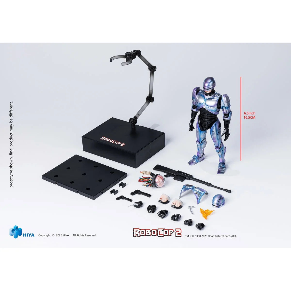 Accessories include 6x interchangeable hands, 2x interchangeable faces, and a set of battle-damaged armor parts (helmet and chest armor), recreating the brutal aftermath of RoboCop’s toughest encounters. Weapons include 2x sizes of AUTO-9 pistols, 1x anti-materiel rifle, 1x wrench and 1x effect part for AUTO-9. The right thigh features a functional compartment for storing AUTO-9, faithfully recreating RoboCop’s iconic 'draw from the leg' moment.
