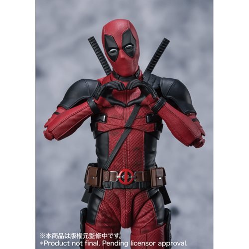 Deadpool joins the S.H.Figuarts lineup! Sculpted in all of the detail you've come to expect from S.H.Figuarts, it includes numerous eye and hand parts that let you re-create your favorite moments from the film. The Deadpool S.H.Figuarts Action Figure includes 3x pairs of optional eyes, 8x pairs of optional hands, 2x swords, sword (stowed), knife, knife scabbard (empty), and eye replacement tool. Measures about 6 1/10-inches tall.
