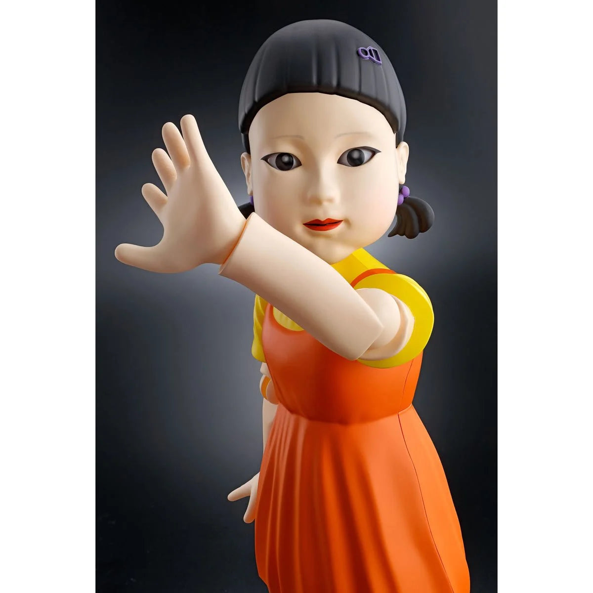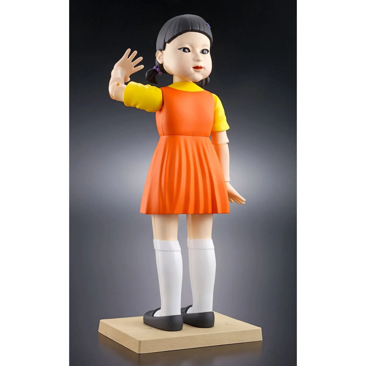 Red-Light, Green-Light game at your fingertips, without the bloody death, of course! This amazing Young-hee doll from the memorable opening game from Netflix's drama series, Squid Game! joins Tamashii Lab! Featuring a motorized rotating head, and replaying key sounds and lines, it lets you re-create the "Red Light, Green Light" game on your tabletop! Accurately sculpted to capture its onscreen appearance, it even features an eye-color changing gimmick for added realism! The Young-hee doll stands about 10 1/4-inches tall and comes with a display stand and optional arm parts. Requires 2x "AAA" batteries, not included.