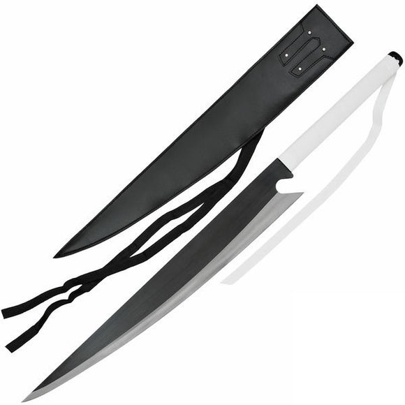 This sleek cleaver of a blade is the shikai form of Ichigo's sword. This sword is constructed from one piece of stainless steel and has the same two tone color as the real Zangetsu sword, Black and Silver Blade. The handle is also wrapped with the nylon cloth.