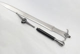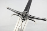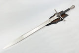 Replica of Geralt's One-Handed Wolf Sword from the video game series The Witcher and Netflix show. Stainless steel with with zinc alloy fittings and hardwood handle. 108cm. Comes disassembled with high quality wooden display plaque.